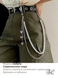 Ремень с люверсами с цепочкой и жемчугом