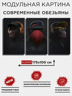 Модульная картина "Современные обезьяны" 175х100 см-3 модуля