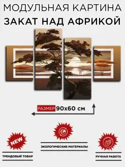 Модульная картина "Закат над Африкой" 90х60 см - 4 модуля