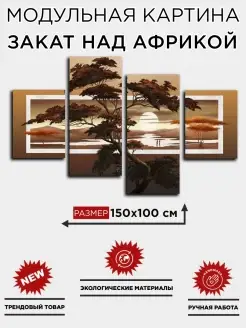 Модульная картина "Закат над Африкой" 150х100 см - 4 модуля