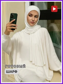 Хиджаб готовый шарф трикотажный бонька шейла белый
