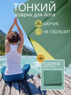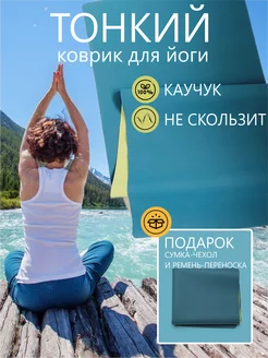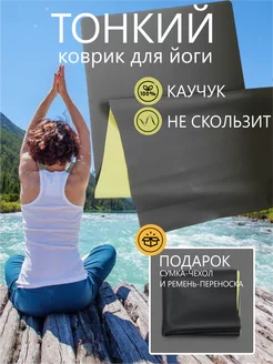 Коврик для йоги тонкий, легкий каучуковый, нескользящий