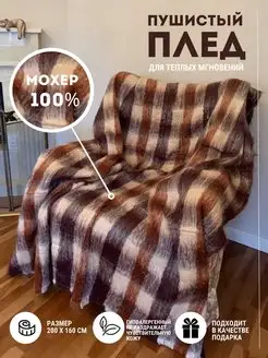 Плед покрывало мохер шерсть 200х160 Индия новогодний подарок