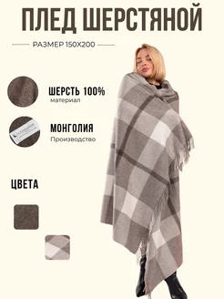 Плед клетчатый 150х200 на диван кровать шерстяной Монголия