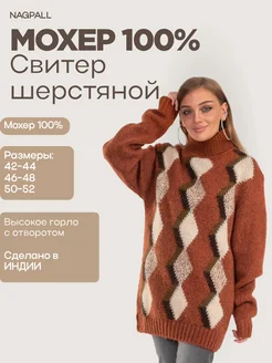 Свитер с воротом на молнии теплый вязаный шерстяной