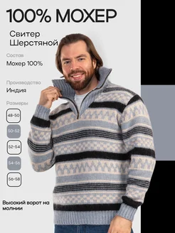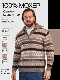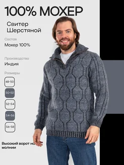 Свитер мужской с воротом на молнии теплый вязаный шерстяной