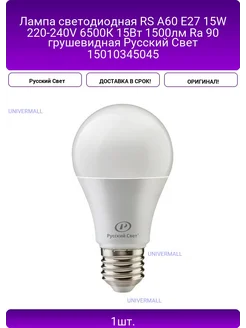Лампа светодиодная RS A60 E27 15W 220-240V 6500К 15Вт