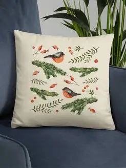 Наволочка с новогодним принтом 41*41, Снегири прилетели