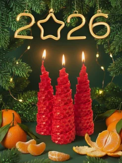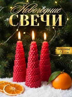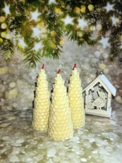 Свечи новогодние Елочки из вощины 3 шт восковая