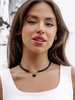 Чокер на шею сердце из натуральных камней