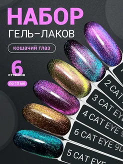 Гель лак для ногтей набор кошачий глаз 6 шт