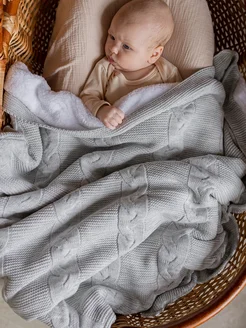 Плед для новорожденных вязаный теплый на выписку зима