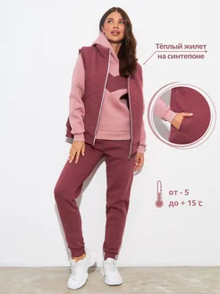 Теплый спортивный костюм тройка с жилеткой и брюками