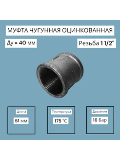 Муфта прямая чугунная Ду32 (1 1 4") ВР (1шт)