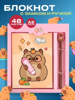 Подарочный Набор Блокнот с замком и ручка Капибара Capybara
