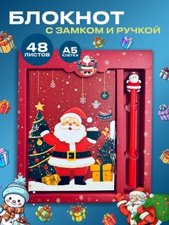 Подарочный Набор Блокнот с замком и ручка Новый Год