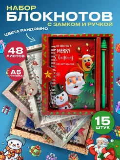 Подарочный Набор Блокнот с замком и ручка Новый Год 15 Штук
