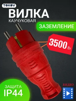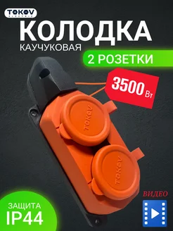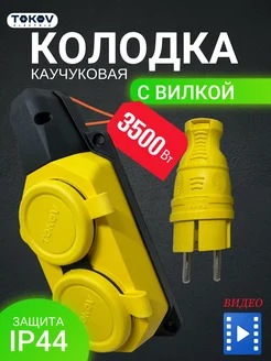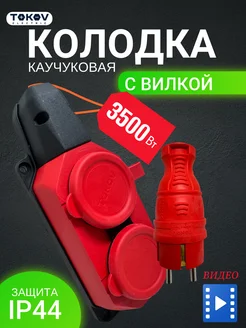 Розетка двойная накладная с заземлением каучуковая + вилка
