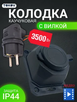 Розетка колодка накладная 1 место + вилка угловая каучук