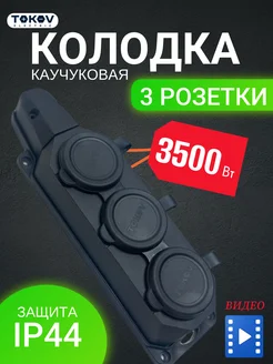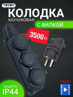 Розетка колодка накладная 3 места + вилка угловая каучук