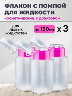 Пластиковый флакон с нажимной помпой дозатором 150 мл, 3 шт