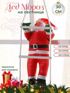 Новогодняя игрушка Дед Мороз на лестнице 30 см