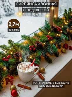 Гирлянда еловая хвойная новогодняя для декора 2,7 м