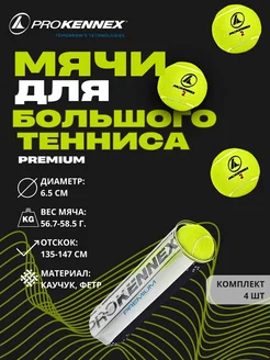 Мячи для большого тенниса PREMIUM набор из 4 банок мячей