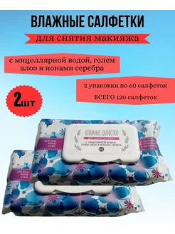 Влажные салфетки для снятия макияжа, 2 шт по 60 салфеток