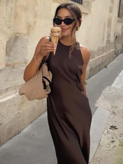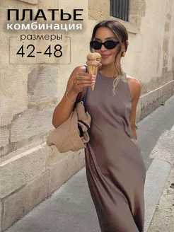 Платье комбинация миди вечернее шелк