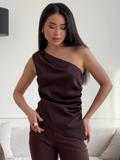 Топ асимметричный на одно плечо шелковый
