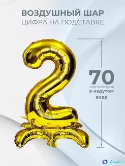 Воздушный шар цифра 2 фольгированный надувной на подставке