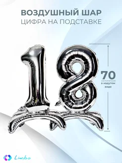 Воздушные шары цифры 18 фольгированные надувные на подставке