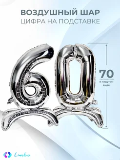 Воздушные шары цифры 60 фольгированные надувные на подставке