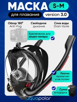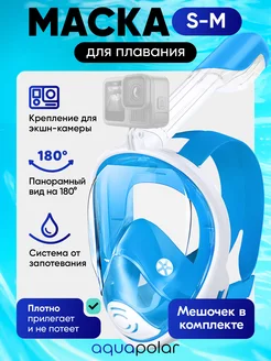 Маска для плавания и снорклинга, полнолицевая, размер S-M