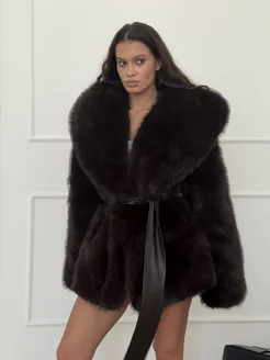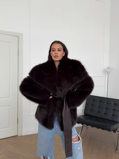 Шуба искусственная короткая с поясом экомех 2025 2026