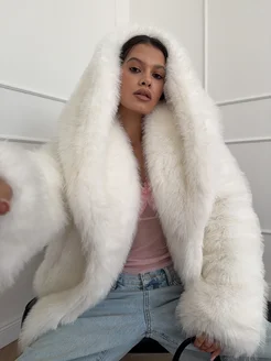Шуба искусственная с капюшоном короткая экомех 2025 2026