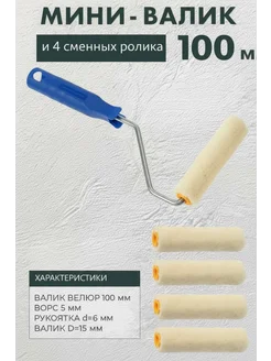 Мини-валик велюровый для мебели 100 мм + 4 сменных ролика