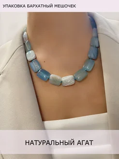 Бусы из натуральных камней агат прямоугольные голубой