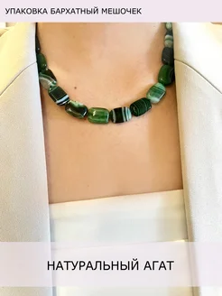 Бусы из натуральных камней агата прямоугольный зеленые
