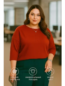 кофта лонгслив трикотажный больших размеров 3 4 из вискозы