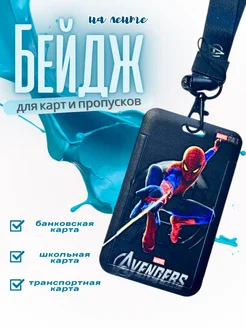 Бейдж для пропуска с лентой и карабином, пластиковый