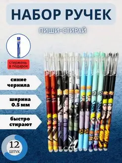 Набор ручек Пиши-стирай гелиевые, синие, с дизайном