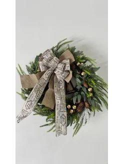 Новогодний венок 40 см на дверь с декоративным колокольчиком