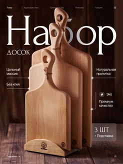 Цельная доска разделочная набор для кухни 3шт на подставке