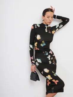 Платье миди с драпировкой и длинными рукавами Элис