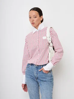 Рубашка офисная в полоску оверсайз длинная с рукавом хлопок