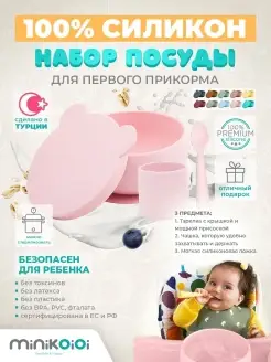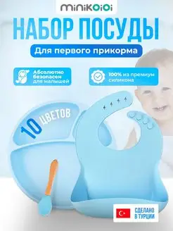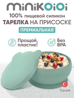 Тарелка для детей на присоске силиконовая глубокая с крышкой
