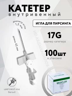 Катетер внутривенный 17G, игла для пирсинга 100шт