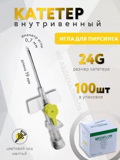 Катетер внутривенный 24G, игла для пирсинга 100шт